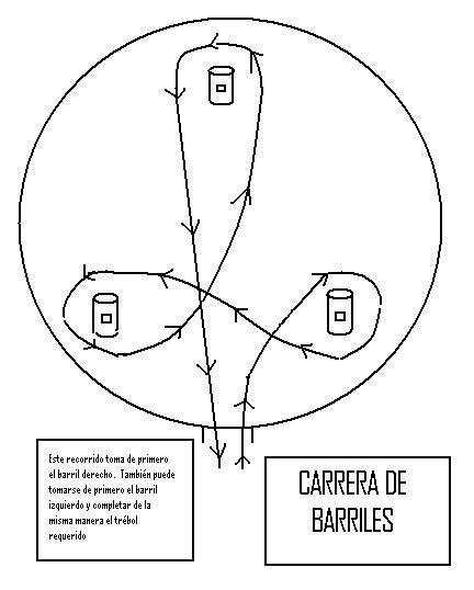 se tiene que lograr una rutina limpia sin tocar ni tumbnar tambos, por cda tambo se le añaden 20 segundos a su tiempo