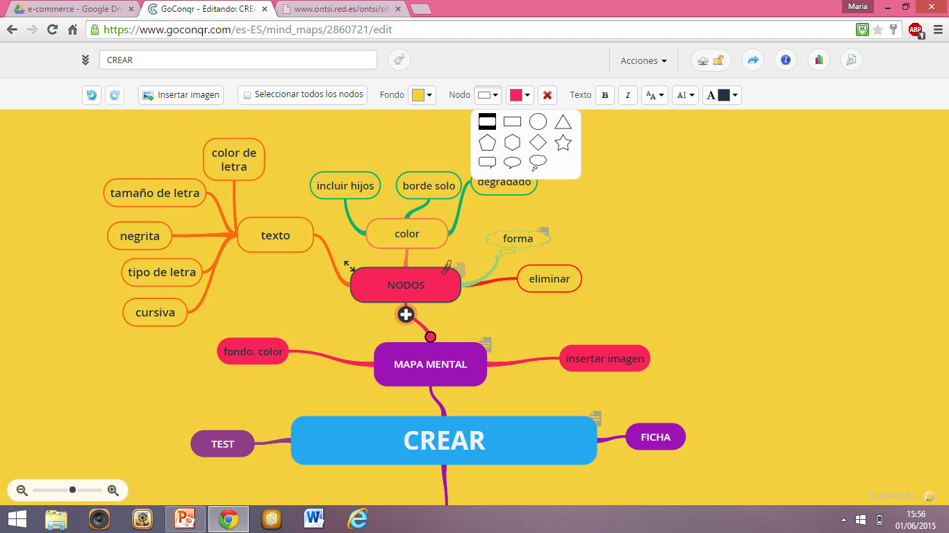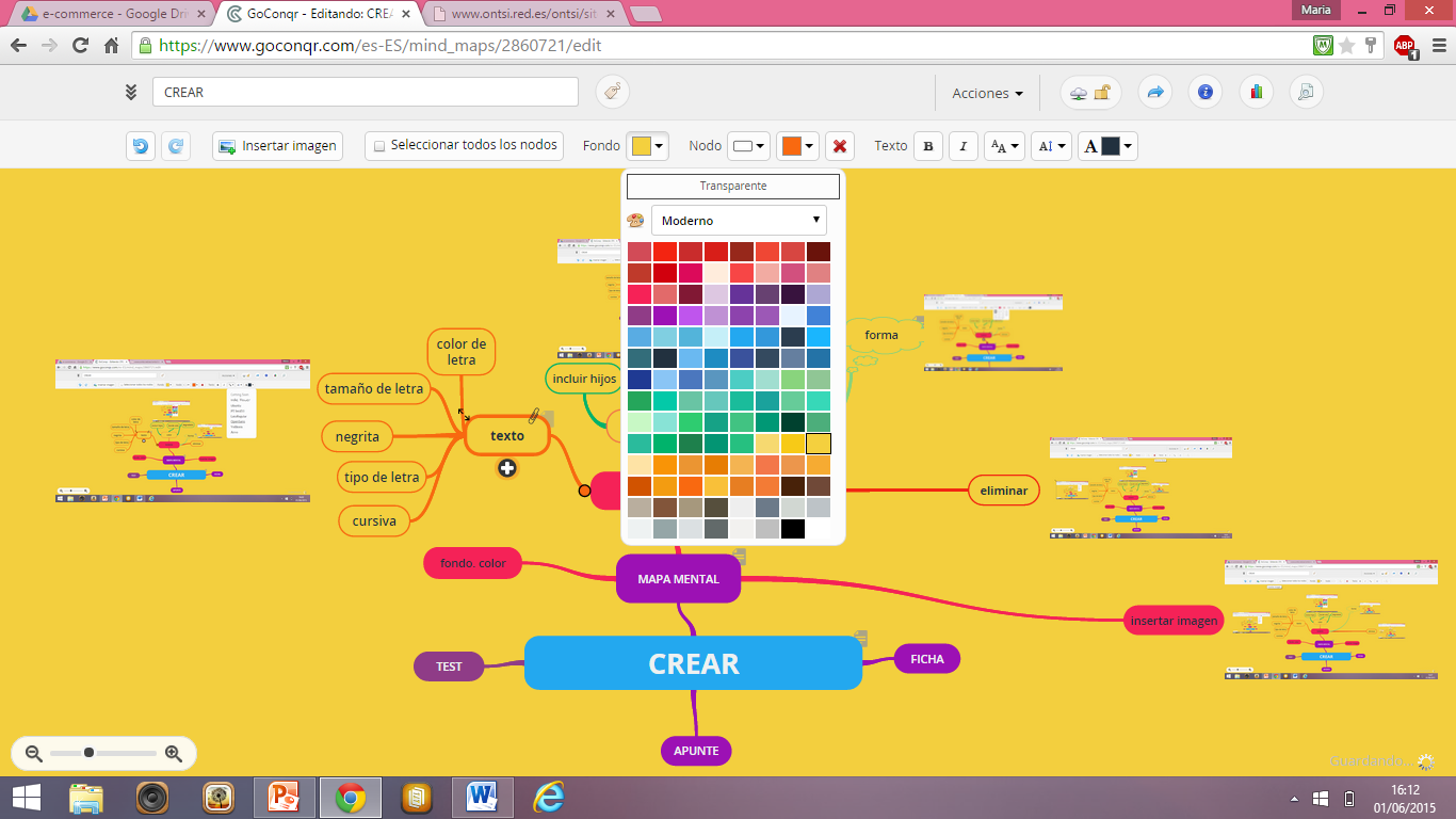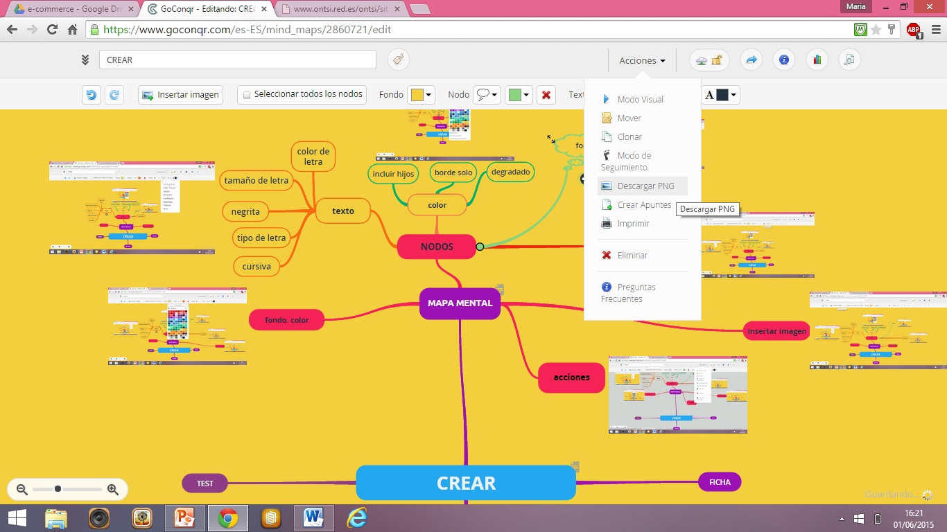 Al pinchar crear se abre un desplegable que nos permite elegir: mapa mental, test, ficha, apunte