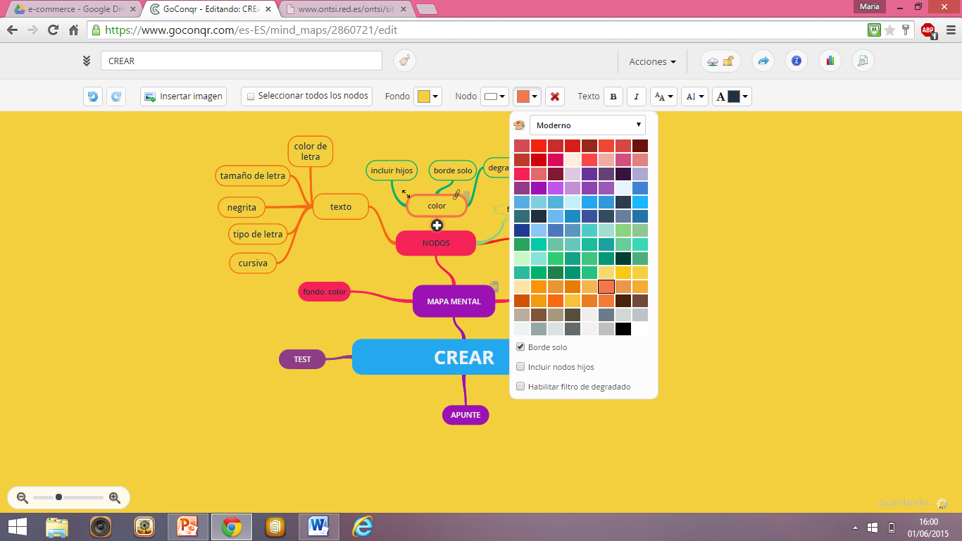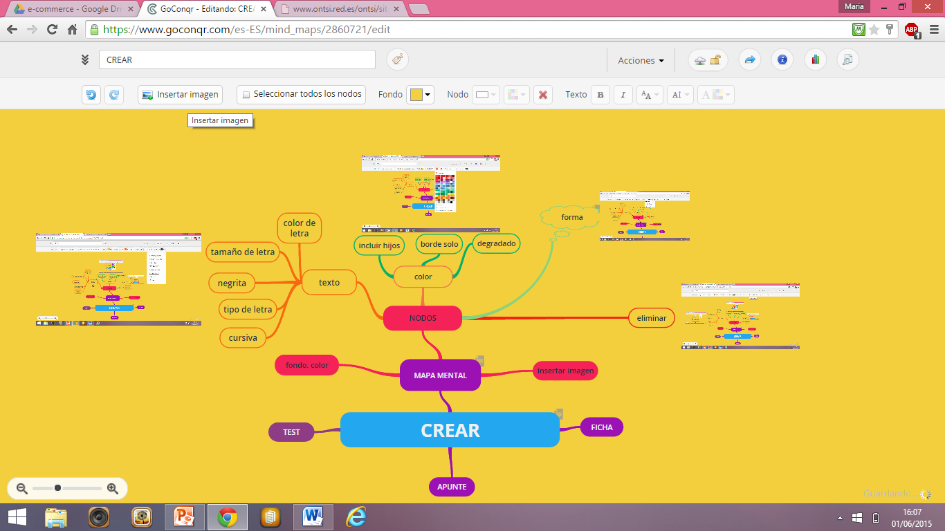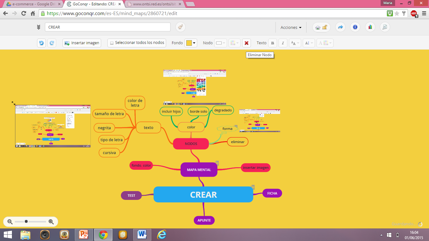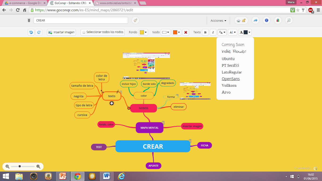 Al pinchar crear se abre un desplegable que nos permite elegir: mapa mental, test, ficha, apunte