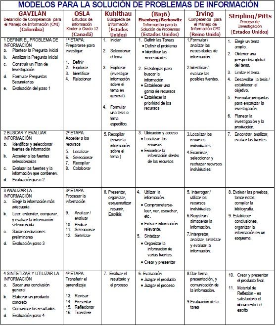 • El de la Asociación de Bibliotecas Escolares de Ontario, Canadá (OSLA) • “Big 6” creado por