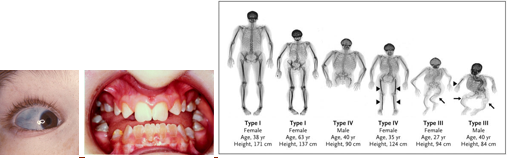 Defects in eyes d/t insufficient deposits (blue sclera)