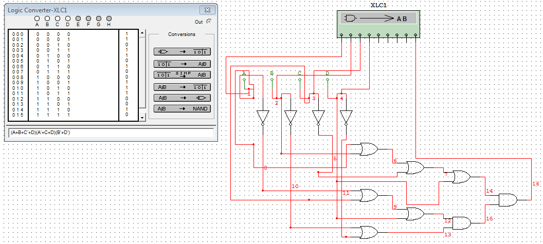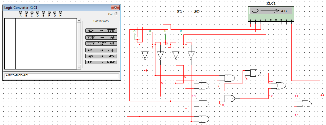 la herramienta logic converter del simulador de Multisim