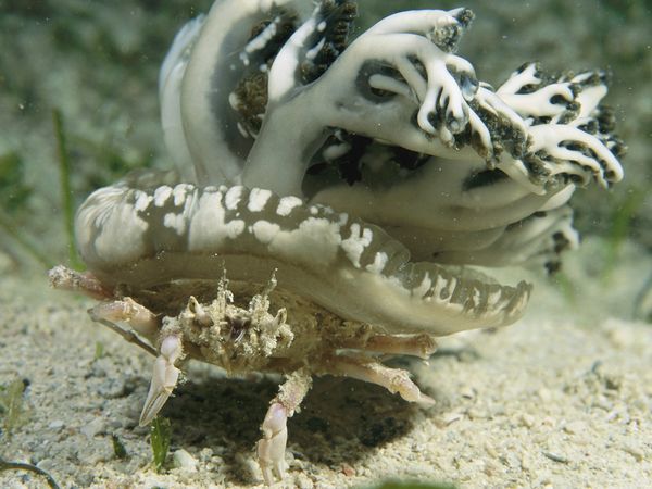 crab carryng jellyfish