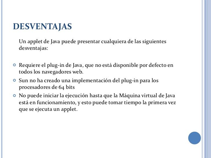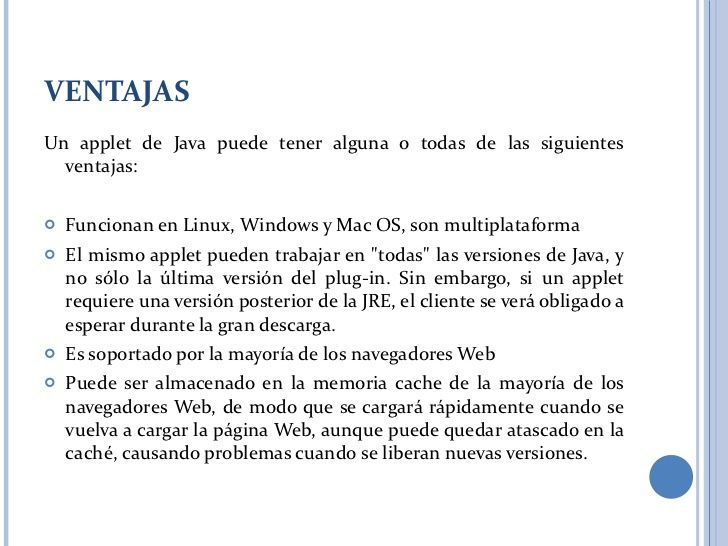 1. Las applets no tienen un método main() con el que comience la ejecución. El papel central de su ejecución lo asumen otros métodos que se verán posteriormente.