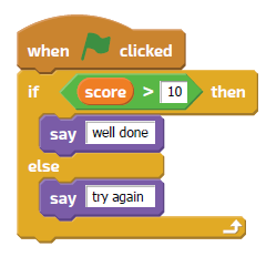 the score is over 10 it will output well done