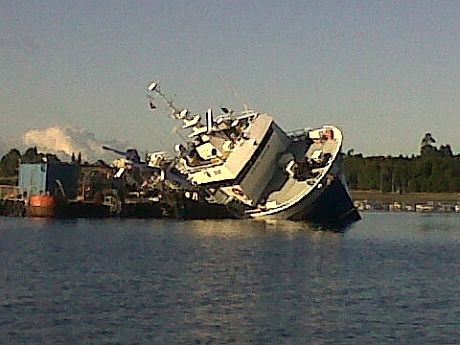 log-driven waves may have impacted on the side boat