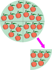 En matemática, la división es una operación aritmética de descomposición que consiste en averiguar cuántas veces un número (divisor) está contenido en otro número (dividendo). El resultado de una división recibe el nombre de cociente. De manera general puede decirse que la división es la operación inversa de la multiplicación. Debe distinguirse la división «exacta» (sujeto principal de este artículo) de la «división con resto» o residuo (la división euclídea). A diferencia de la suma, la resta o la multiplicación, la división entre números enteros no está siempre definida; en efecto: 4 dividido 2 es igual a 2 (un número entero), pero 2 entre 4 es igual a 1/2 (un medio), que ya no es un número entero. La definición formal de «división» , «divisibilidad» y «conmensurabilidad», dependerá luego del conjunto de definición.