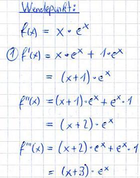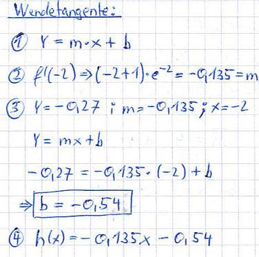 Wendetangente berechnen: Wir suchen zunächst den Wendepunkt: Wir leiten die Funktion f(x) dreimal ab. Wir setzen die zweite Ableitung Null und berechnen den X-Wert, sofern möglich Sofern möglich, setzen wir diesen X-Wert in die dritte Ableitung ein Ist dieses Ergebnis ungleich Null, liegt ein Wendepunkt vor Der X-Wert wird in f(x) eingesetzt, um den zugehörigen Y-Wert zu bestimmen Anschließend ermitteln wir die Wendetangente: Die Wendetangente ist eine Gerade der Form y = mx + b. Die Variablen m und b müssen bestimmt werden Die X-Koordinate des Wendepunkts setzen wir in die erste Ableitung ein und erhalten "m" Anschließend berechnen wir die Schnittstelle "b" mit der Y-Achse Die Werte setzen wir in die Geradengleichung ein und erhalten dadurch die Wendetangente