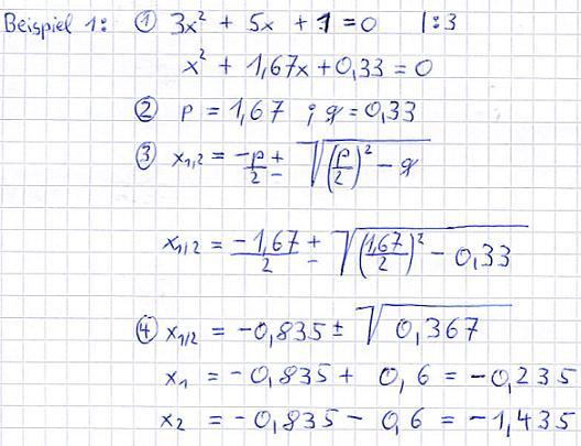 So löst man eine quadratische Gleichung: Bringt die Gleichung in die Form x2 + px + q = 0 Findet "p" und "q" raus Setzt dies in die PQ-Formel ein Berechnet die Formel damit
