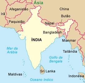 A Índia é uma vasta península situada no sul da Ásia. A península é chamada de Decã ou subcontinente indiano.O país situa-se entre o Oceano Índico e a Cordilheira do Himalaia, tendo ao norte a China, o Butão e o Nepal, ao sul o Oceano Índico, a leste o Golfo de Bengala e a oeste o mar da Árabia.
