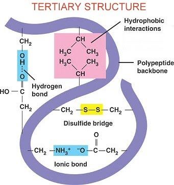 Estructura Primaria Secundaria Terciaria Cuaternaria Hélice alfa Lámina beta Cadena pro-alfa Fuerzas intermoleculares Bisagras Dominios Fuerzas de Van der Waals Puentes de disulfuro Puentes de H Interacción iónica Interacción hidrofóbica o apolar