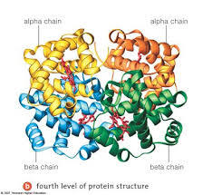 HEMOGLOBINA:-Función: transportar O2 en sangre-Formada por 4 cadenas: 2 de globina alfa y 2 de globina beta-Estructura alfa2 beta2-Cada subunidad tiene 4 grupos HEMO--> puede transportar 4O2-Desoxihemoglobina-->sin O2-Oxihemoglobina-->con O2-La unión del O2 a la hemoglobina produce cambios en su forma-Proteína muy conservada porque ha tenido éxito en la evolución-Sólo coge O2 cuando [O2] es alta, si es baja lo suelta