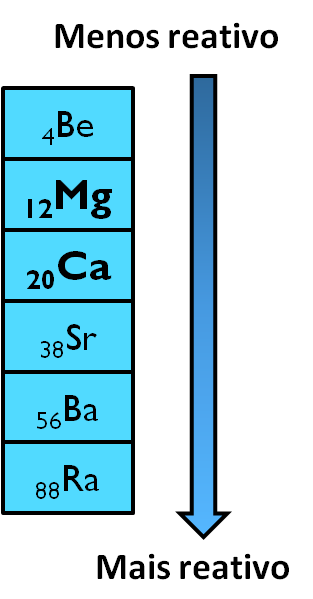Grupo 2 - GRUPO DOS METAIS ALCALINO-TERROSOS têm 2 eletrões de valência; têm tendência a perder 2 eletrões para ficarem estáveis; originam facilmente iões de carga +2 (dipositivos); a reatividade aumenta ao longo do grupo.