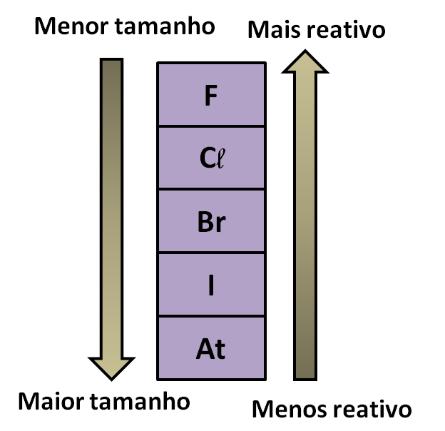Grupo 17 - GRUPO DOS HALOGÉNEOS têm 7 eletrões de valência; têm tendência a ganhar 1 eletrão para ficarem estáveis; originam facilmente iões de carga -1 (mononegativos); a reatividade diminui ao longo do grupo.