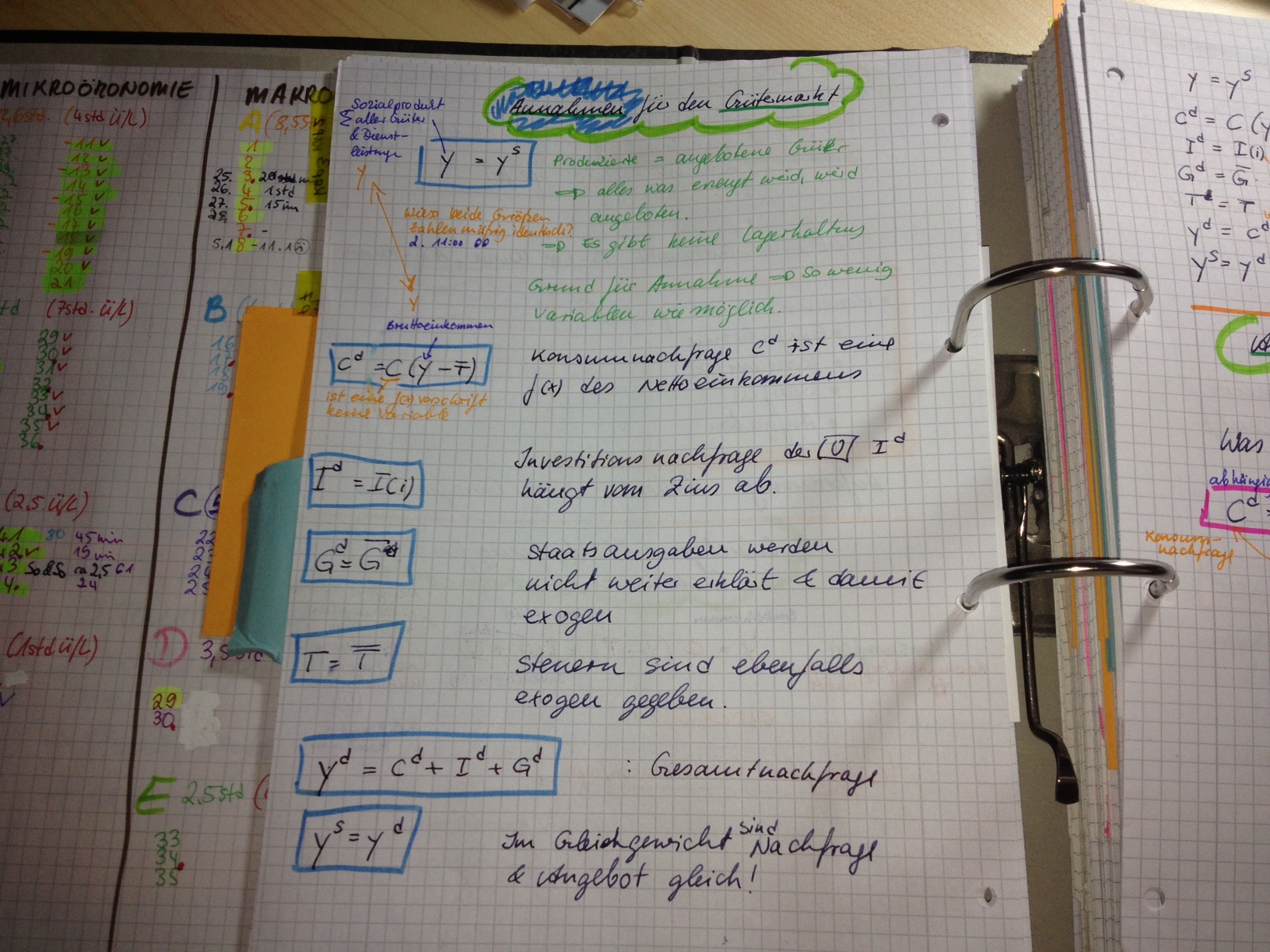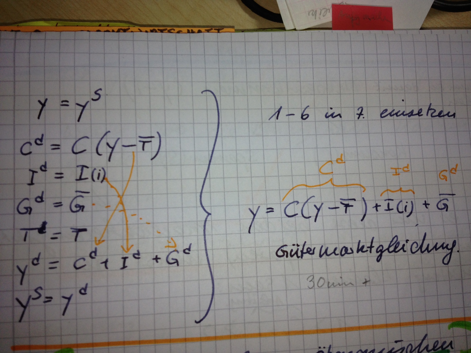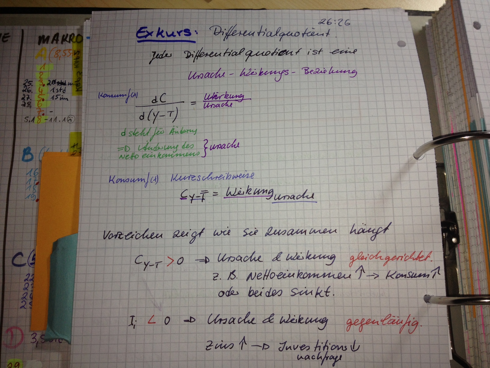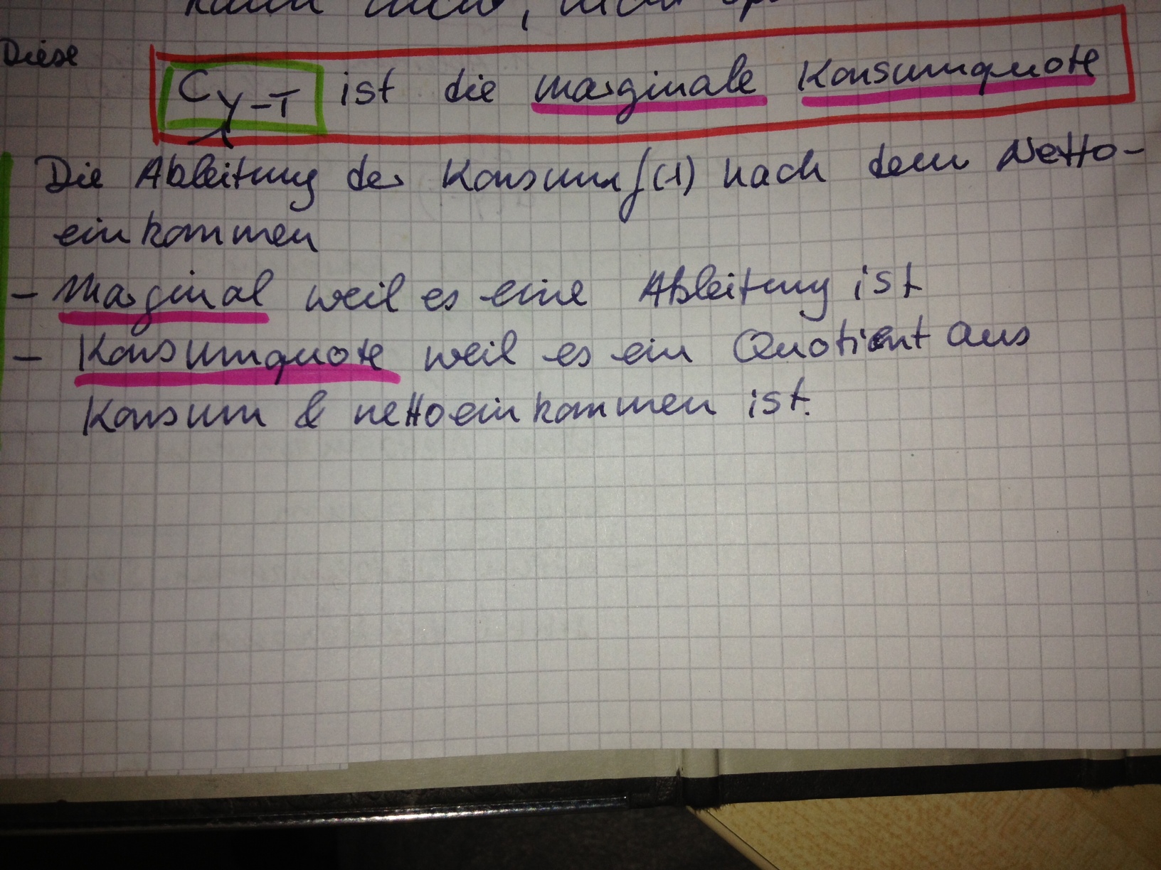 Vorlesesung 2:In der Notiz: Das es nur diese Beiden Möglichkeiten gibt (Das Einkommen zu konsumieren oder zu sparen) muss die Ableitung kleiner 1 sein. ?Warum kleiner 1?Weil beides zusammen 100% gibt. --> 1