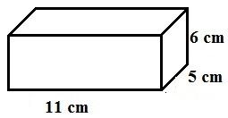 f/b = 11x5 = 55x2 = 110t/b = 6x5 = 30x2 = 60sides = 11x6 = 66x2 = 132110 + 60 + 132 = 302cm