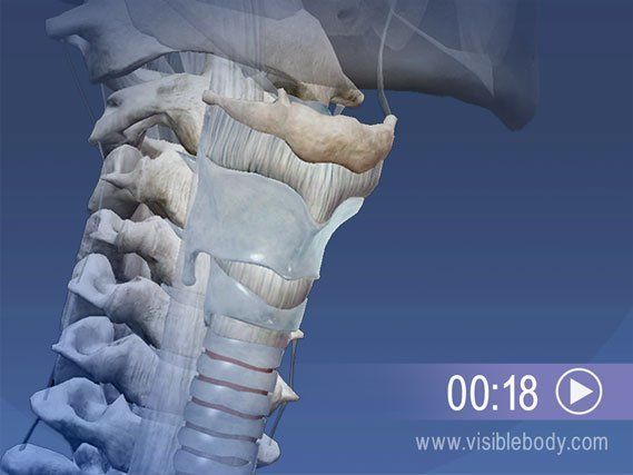 La laringe y las cuerdas vocales nos permiten respirar, hablar y cantar La laringe conecta la parte inferior de la faringe, la laringofaringe, con la tráquea. Mantiene abiertos los conductos para el paso de aire durante la respiración y la digestión y es el órgano clave para la producción de sonidos. La laringe está formada por nueve cartílagos. Uno, la epiglotis, es un salvavidas: Ubicado en la parte posterior de la laringe, la epiglotis se cierra como una puerta trampa cuando deglutimos. Esta acción dirige los alimentos hacia abajo en dirección al esófago y los aleja de la tráquea.