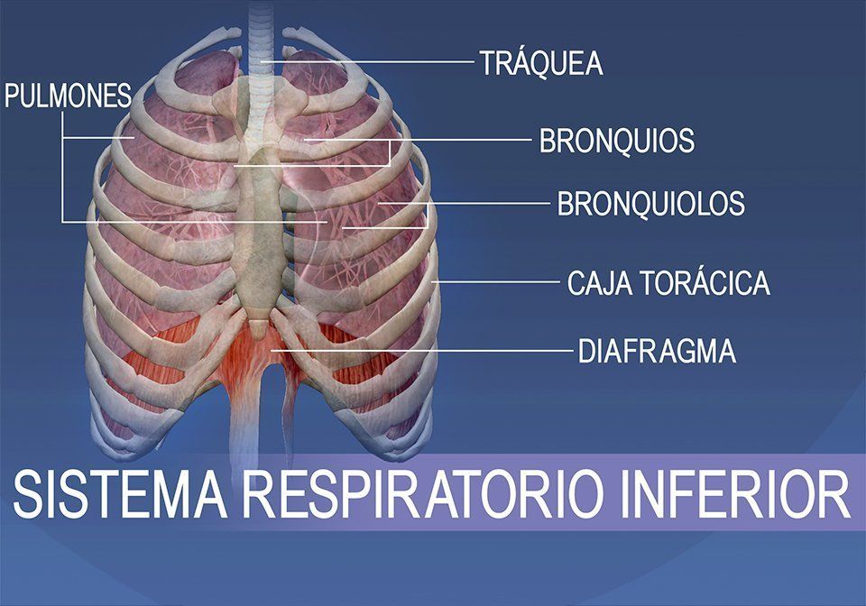 Pulmones El sistema respiratorio inferior, o tracto respiratorio inferior, consiste en la tráquea, los bronquios y bronquiolos, y los alvéolos, que forman los pulmones. Estas estructuras hacen ingresar aire del sistema respiratorio superior, absorben el oxígeno y, en el intercambio, liberan dióxido de carbono. Otras estructuras, es decir la caja torácica (o parrilla costal) y el diafragma, protegen y brindan soporte a estas funciones.