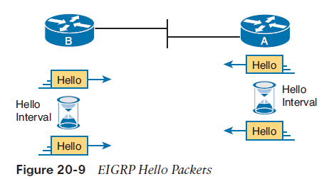 EIGRP Concepts and Operation Enhanced Interior Gateway Routing Protocol (EIGRP) went through a similar creation process as compared to RIP, but with the work happening inside Cisco. Cisco has already created the Interior Gateway Routing Protocol (IGRP) in the 1980s, and the same needs thatdrove people to create RIPv2 and OSPF drove Cisco to improve IGRP as well. Instead of naming the original IGRP Version 1, and the new one IGRP Version 2, Cisco named the new version Enhanced IGRP (EIGRP).EIGRP acts a little like a DV protocol, and a little like no other routing protocol. Frankly, over the years, different Cisco documents and different books (mine included) have characterized EIGRP as either its own category, called a balanced hybrid routing protocol, or as some kind of advanced DV protocol.EIGRP Maintains Neighbor Status Using HelloUnlike RIP, EIGRP does not send full or partial update messages based on a periodic timer. When a router first comes up, it advertises known routing information. Then, over time, as facts change, the router simply reacts, sending partial updates with the new information. The fact that EIGRP does not send routing information on a short periodic timed basis greatly reduces EIGRP overhead traffic, but it also means that EIGRP cannot rely on these updates to monitor the state of neighboring routers. Instead, EIGRP defines the concept of a neighbor relationship, using EIGRP hello messages to monitor that relationship. The EIGRP hello message and protocol defines that each router should send a periodic hello message on each interface, so that all EIGRP routers know that the router is still working.