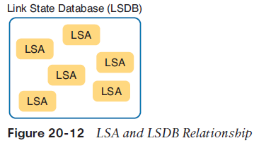 As long as the network stays stable, router E has chosen the best route, and is ready to act, as follows:■ Router E uses the successor route as its only route to subnet 1, as listed in the IPv4 routing table.■ Router E lists the route to subnet 1, through router B, as a feasible successor, as noted in the EIGRP topology table.EIGRP SummaryAs you can see, EIGRP provides many advantages over both RIPv1 and RIPv2. Most significantly, it uses a much better metric, and it converges much more quickly than does RIP.The biggest downside to EIGRP has traditionally been that EIGRP was a Cisco proprietary protocol. That is, to run EIGRP, you had to use Cisco products only. Interestingly, Cisco has published EIGRP as an informational RFC in 2013, so now other vendors could choose to add EIGRP support to their products. Over time, maybe this one negative about EIGRP will fade away.Understanding the OSPF Link-State Routing ProtocolLike EIGRP, OSPF converges quickly. Like EIGRP, OSPF bases its metric by default on link bandwidth, so that OSPF makes a better choice than simplyrelying on the router hop-count metric used by RIP. But OSPF uses much different internal logic, being a link-state routing protocol rather than a distance vector protocol.OSPF Comparisons with EIGRPAlthough EIGRP uses DV logic, and OSPF uses LS logic, OSPF and EIGRP have three major activities that, from a general perspective, appear to be the same:1. Both OSPF and EIGRP use a hello protocol to find neighboring routers, maintain a list of working neighbors, monitor ongoing hello messages to make sure the neighbor is still reachable, and to notice when the path to a neighbor has failed.2. Both OSPF and EIGRP exchange topology data, which each router stores locally in a topology database. The topology database describes facts about the network, but is a different entity than the router’s IPv4 routing table.3. Both OSPF and EIGRP cause each router to process its topology database, from which the router can choose the currently best route (lowest metric route) to reach each subnet, adding those best routes to the IPv4 routing table.For instance, in a network that uses Nexus Layer 3 switches, you could use OSPF or EIGRP. If using OSPF, you could display a Layer 3 switch’s OSPF neighbors (show ip ospf neighbor), the OSPF database (show ip ospf database), and the IPv4 routing table (show ip route). Alternatively, if you instead used EIGRP, you could display the equivalent in EIGRP: EIGRP neighbors (show ip eigrp neighbor), the EIGRP topology database (show ip eigrp topology), and the IPv4 routing table (show ip route). However, if you dig a little deeper, OSPF and EIGRP clearly use different conventions and logic. The protocols, of course, are different, with EIGRP being created inside Cisco and OSPF developed as an RFC. The topology databases differ significantly, with OSPF collecting much more detail about the topology, and with EIGRP collecting just enough to make choices about successor and feasible successor routesBuilding the OSPF LSDB and Creating IP RoutesLink-state protocols build IP routes with a couple of major steps. First, the routers build a detailed database of information about the network and flood that so that all routers have a copy of the same information. (The information is much more detailed than the topology data collected by EIGRP.) That database, called the link-state database (LSDB) , gives each router the equivalent of a roadmap for the network, showing all routers, all router interfaces, all links between routers, and all subnets connected to routers. Second, each router runs a complex mathematical formula (the details of which we can all ignore) to calculate the best route to reach each subnet.Topology Information and LSAs Routers using LS routing protocols need to collectively advertise practically every detail about the internetwork to all the other routers. At the end of the process of flooding the information to all routers, every router in the internetwork has the exact same informationabout the internetwork. Flooding a lot of detailed information to every router sounds like a lot of work, and relative to DV routing protocols, it is. OSPF, the most popular LS IP routing protocol, organizes topology information using linkstate advertisements (LSAs) and the link-state database (LSDB). Figure 20-12 represents the ideas. Each LSA is a data structure with some specific information about the network topology— for instance, each router must be described by a separate LSA. The LSDB holds the collection of all the LSAs known to a router. Think of the LSDB as having one LSA for every router, one for every link, with several other types as well.