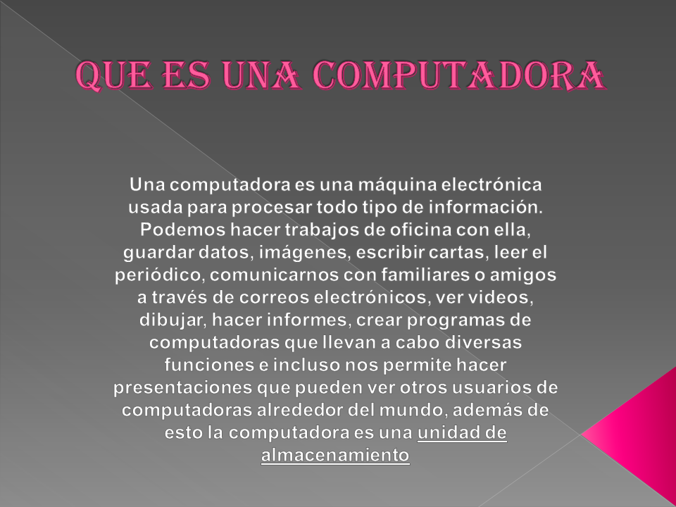 una computadora es un sistema digital con tecnología microelectrónica capaz de procesar datos a partir de un grupo de instrucciones denominado programa
