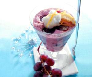 Prestakuntza: 1. Azukrea uran urtzeko koilaratxoaz eragiozu.2. Egosi hamar minutu. Gero kendu eta utzi hoztea.3. Limoiak zukutu eta almibarri zukua gehitu. Hau egin eta gero iragazi dena.4. Mahatsak irabiatu eta iragazi. 5. Erantsi mahatsa-pureari laranjondo-loreko ura eta ardo goxoa. Ipini dena katilu batean eta sartu izozkailuan 30 minutu.6. Azkenean atera, ondo irabiatu eta sartu berriro izozkailuan. Errepikatu hau bi aldiz eta utzi izozkailuan hartu arte.