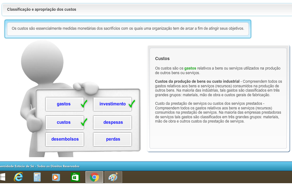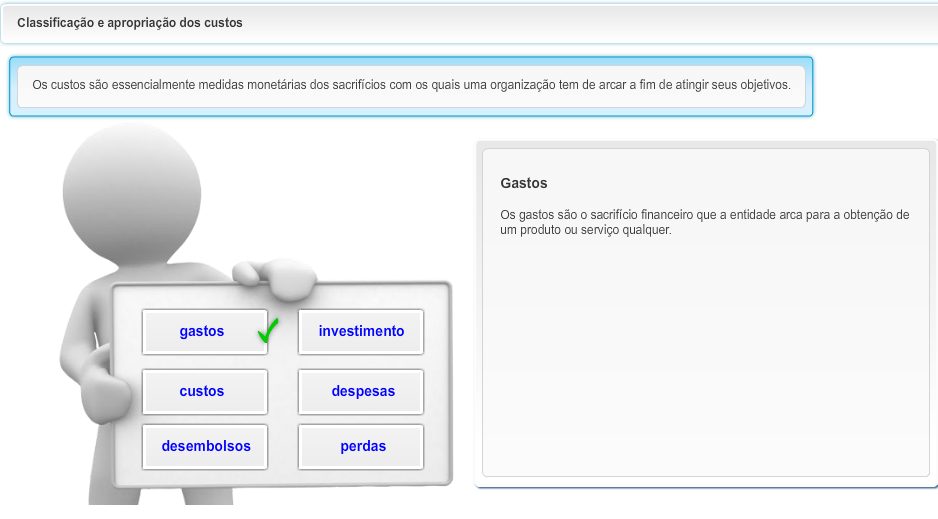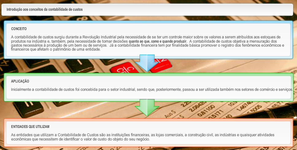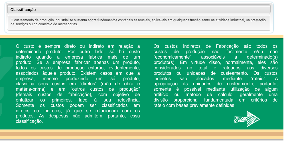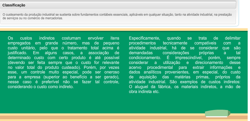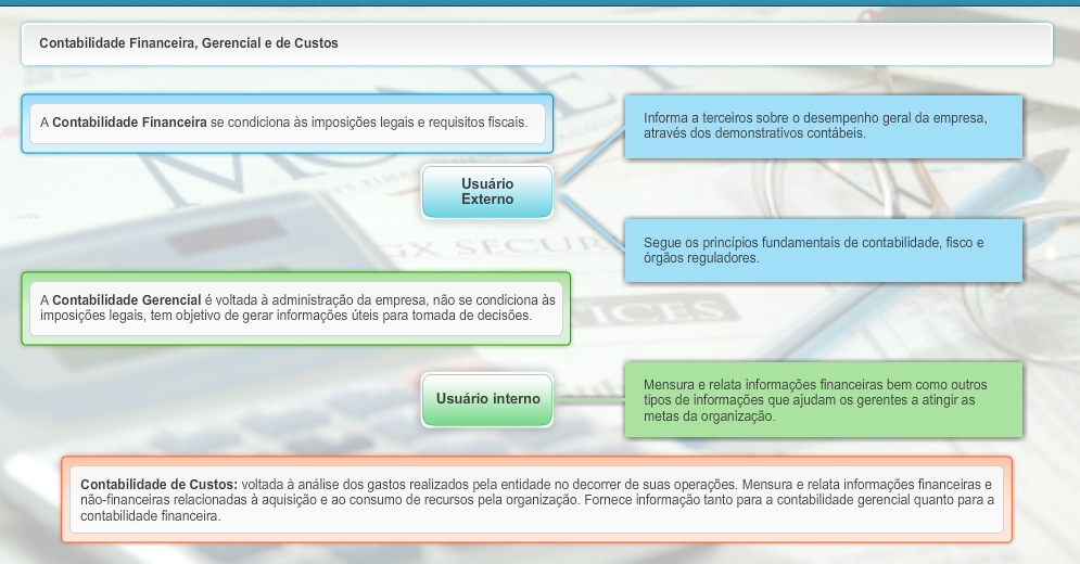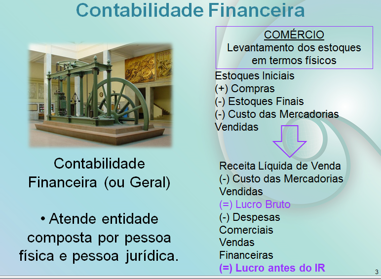 Vídeo - Aula Contabilidade Financeira ou Geral Ela surgiu na época da revolução industrial, pois nessa época eu tinha a produção e o controle de estoques físicos. Era um controle periódico. Nó final de cada período eu tinha um estoque inicial, a subtração das compras que eu tinha feito, e o estoque final. Contabilidade Gerencial****“Processo de identificar( Saber onde esta a informação ) , mensurar( Dar valor ) , acumular ( Acumular as informações impostantes), analisar( Analisar as informações juntas ) , preparar ( Organiza - las ) interpretar ( Interpreta - las juntas ) e comunicar informações que auxiliem os gestores a atingir objetivos organizacionais.” (Horngren, Sundem, Stratton, 2004 apud Frezatti et al, 2009).Estratégica à Tomada de decisãoContabilidade Gerencial é a junção da contabilidade financeira com a contabilidade de custos Informação contábil•Contabilidade financeira –Usuário externo - Bancos •Gestão de custos e contabilidade gerencial –Computar custo de serviços, produtos e outros objetos de interesse –Planejamento e controle –Tomada de decisãoConceitos Iniciais•Gasto –Compra de um produto ou serviço qualquer, que gera sacrifício financeiro para a entidade (desembolso), representado por entrega ou promessa de entrega de ativos (geralmente dinheiro) –Ex.: Matéria-prima; equipamentos ( Ainda não saiu do caixa) •Desembolso –Pagamento resultante da aquisição do bem ou serviço –Ex.: Pagamento de fornecedor ( Saiu do Caixa ) •Investimento –Gasto ativado em função da sua vida útil ou de benefícios atribuíveis a futuro(s) período(s) –Ex.: Aquisição de máquina•Custo –Gasto relativo ao bem ou serviço utilizado na produção de outros bens ou serviços. São classificados como diretos, indiretos, fixos, variáveis. –Ex.: Matéria-prima; mão de obra ( Esta diretamente ou indiretamente ligada a fabricação do produto ) •Despesa –Bem ou serviço consumido direta ou indiretamente para a obtenção de receitas. São divididas em Operacionais, Administrativas, Financeiras, Vendas. –Ex.: Honorários administração; aluguel escritório •Perda –Bem ou serviço consumidos de forma anormal e involuntária. –Ex.: Incêndios, enchentes, obsolescência