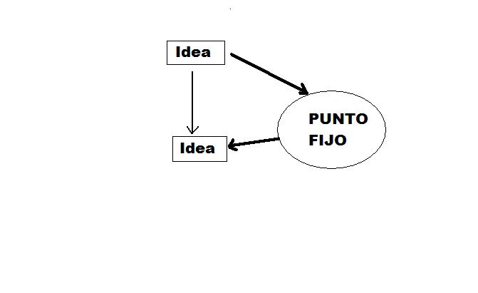 Siempre que buscamos alternativas tenemos una referencia: es el punto fijo.Comenzamos con una idea que vinculamos a un punto fijo. Luego buscamos ideas que se vinculen también a este punto fijo.El proposito es el tipo mas comun de punto fijo.GruposSi alguien dice naranja, otra persona puede decir manzana, pera,..... en general frutoas corrientesY otra persona puede decir limones,.... citricosY otra persona cerveza, porque piensa que habñamos de bebidas refrecscantes.Por eso es tan importante definir correctamente el punto fijo.Semejanza¿Que pintores tienen un estilo parecido? ¿Que hojas se parecen a esta? ¿Que otras enfermedades producen una erupción cutánea? La semejanza es solo una manera de expresar un grupo.Todos los puntos fijos son en realidad conceptos. Pasamos de la idea real que el concepto esconde y despues pasamos a otras maneras de realizarlo. Es como pasar de un niño a sus padres para encontrar los hermanos y hermanas después. La idea es una manera practica de actuar, el concepto es el metodo general involucrado.Resulta importante expresar con claridad y precision el concepto que se utilizara como punto fijo..