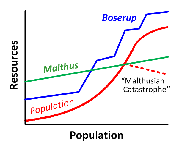 Shortages of fossil fuels Global population growth (over 8 billion) Persistent poverty (1.1 billion living on less than $1 a day in 2011) Climate change (1-2 degree warming by 2030) Water shortages (by 2030 people will have access to 30% less water) Famine Malthus - population growth will overtake resource growth leading to famine and warBoserup - 'necessity is the mother of invention' When population growth begins to overtake resource growth, something will be invented in order to cope