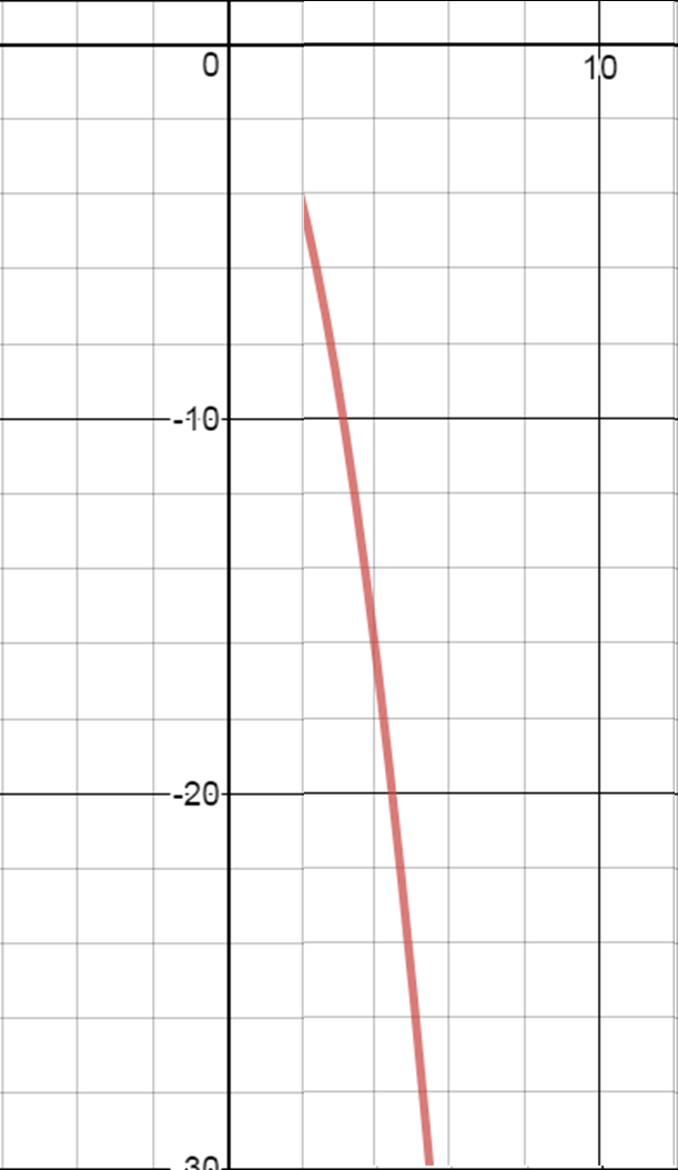 and the answer for finding the range would be F(x)<-4. If we didn't add the domain the plotted graph would look like this: