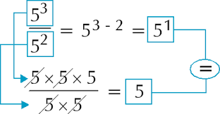 Es otra potencia con la misma base y cuyo exponente es la diferencia de los exponentes.