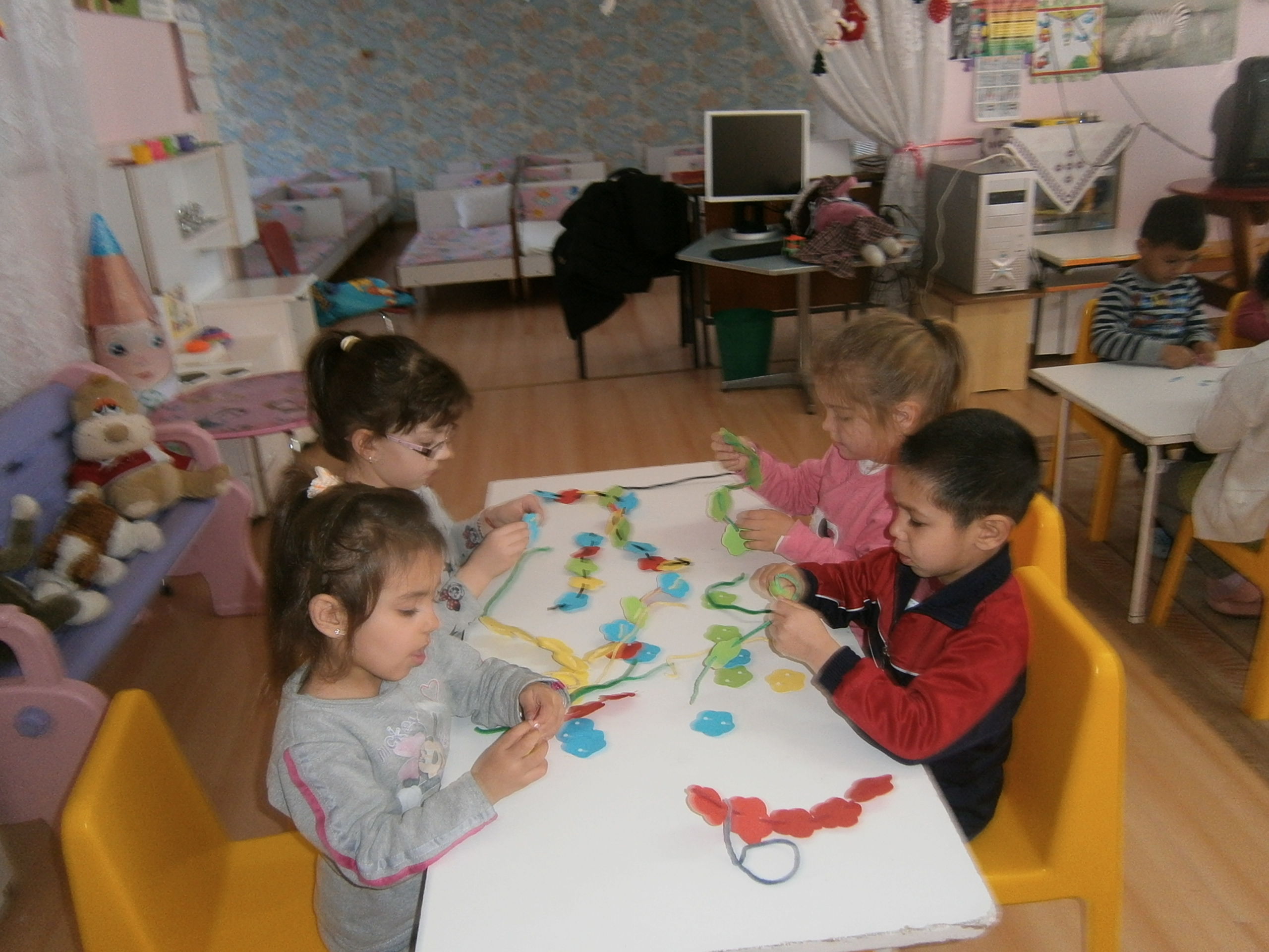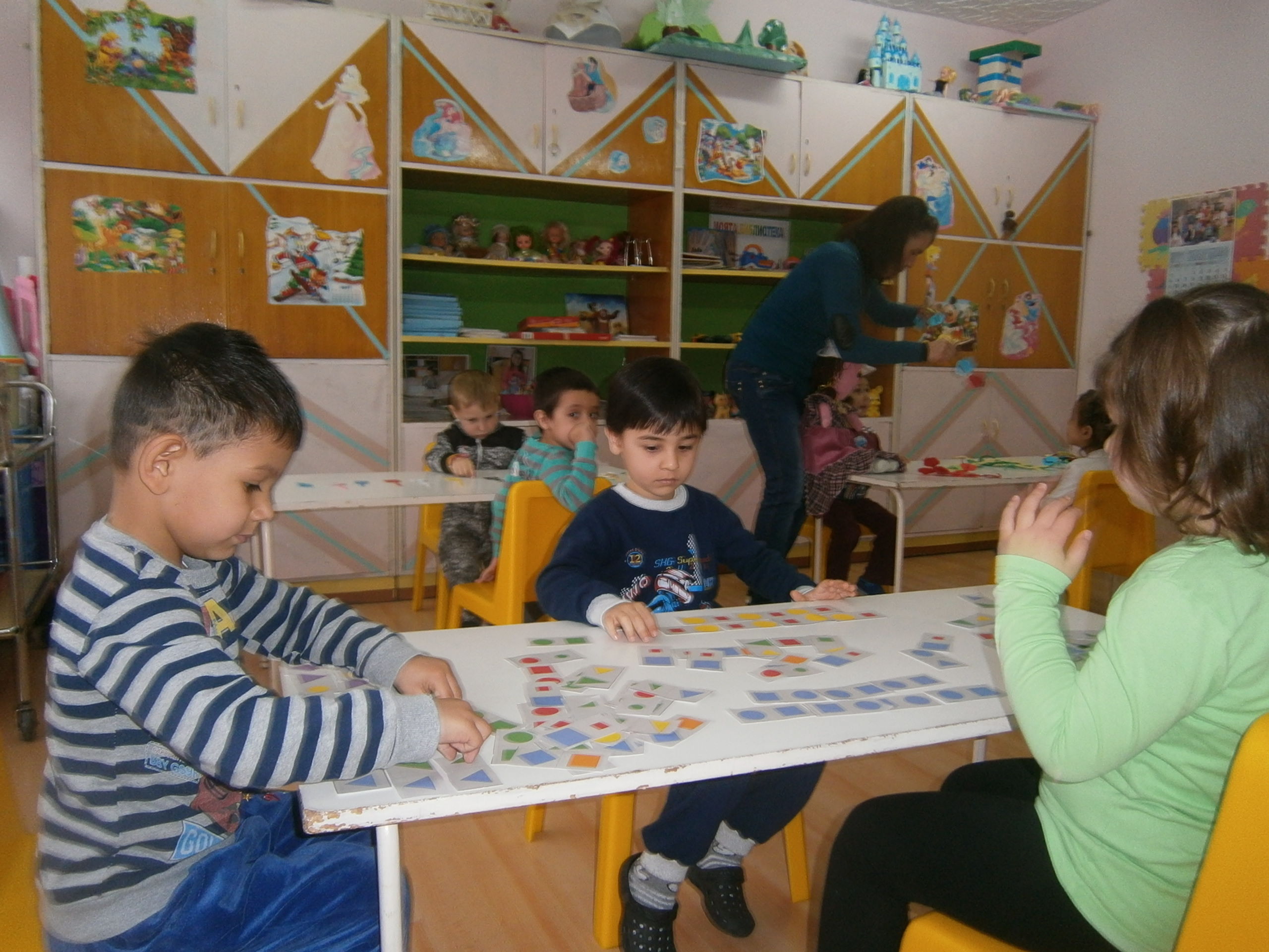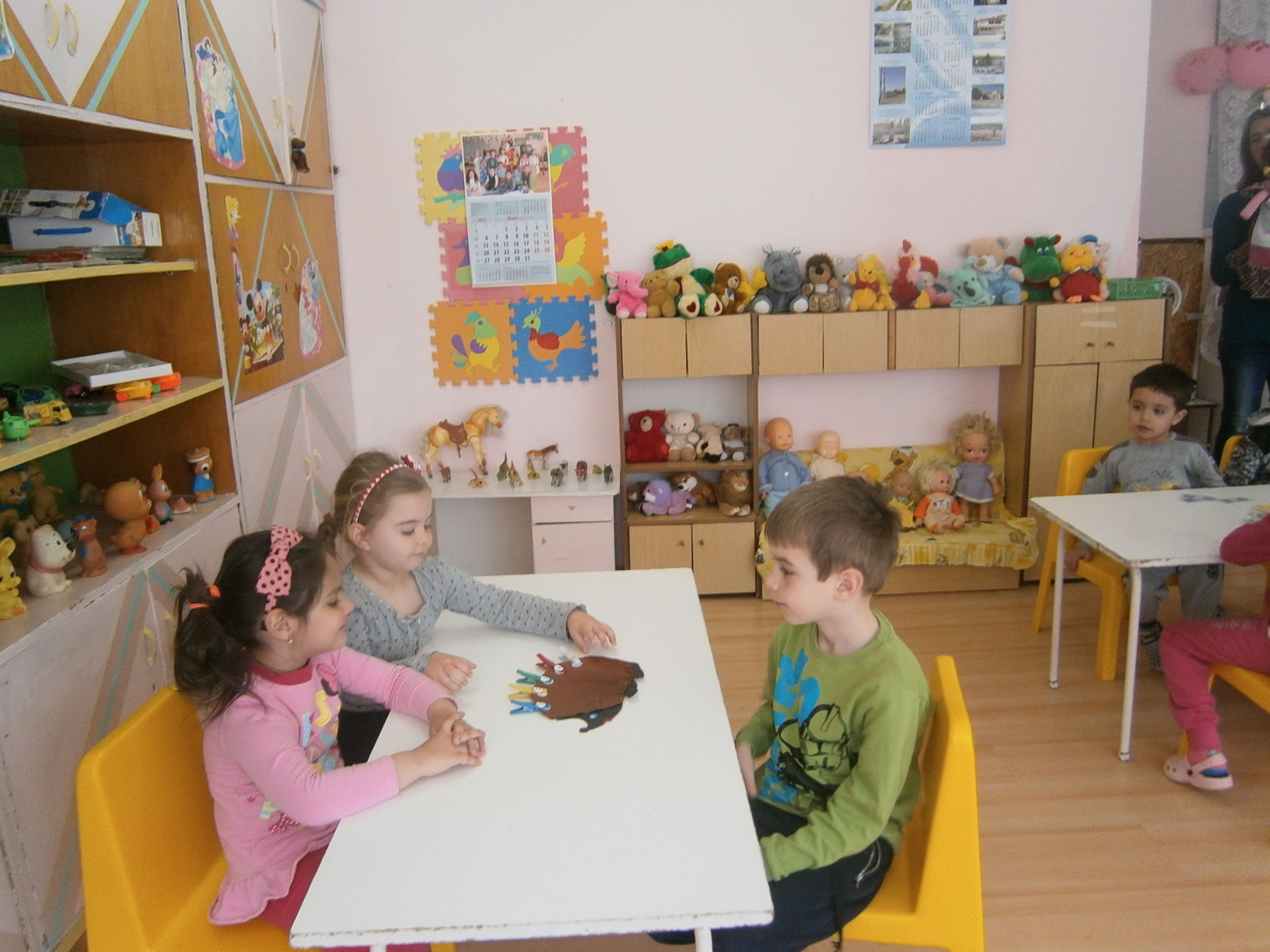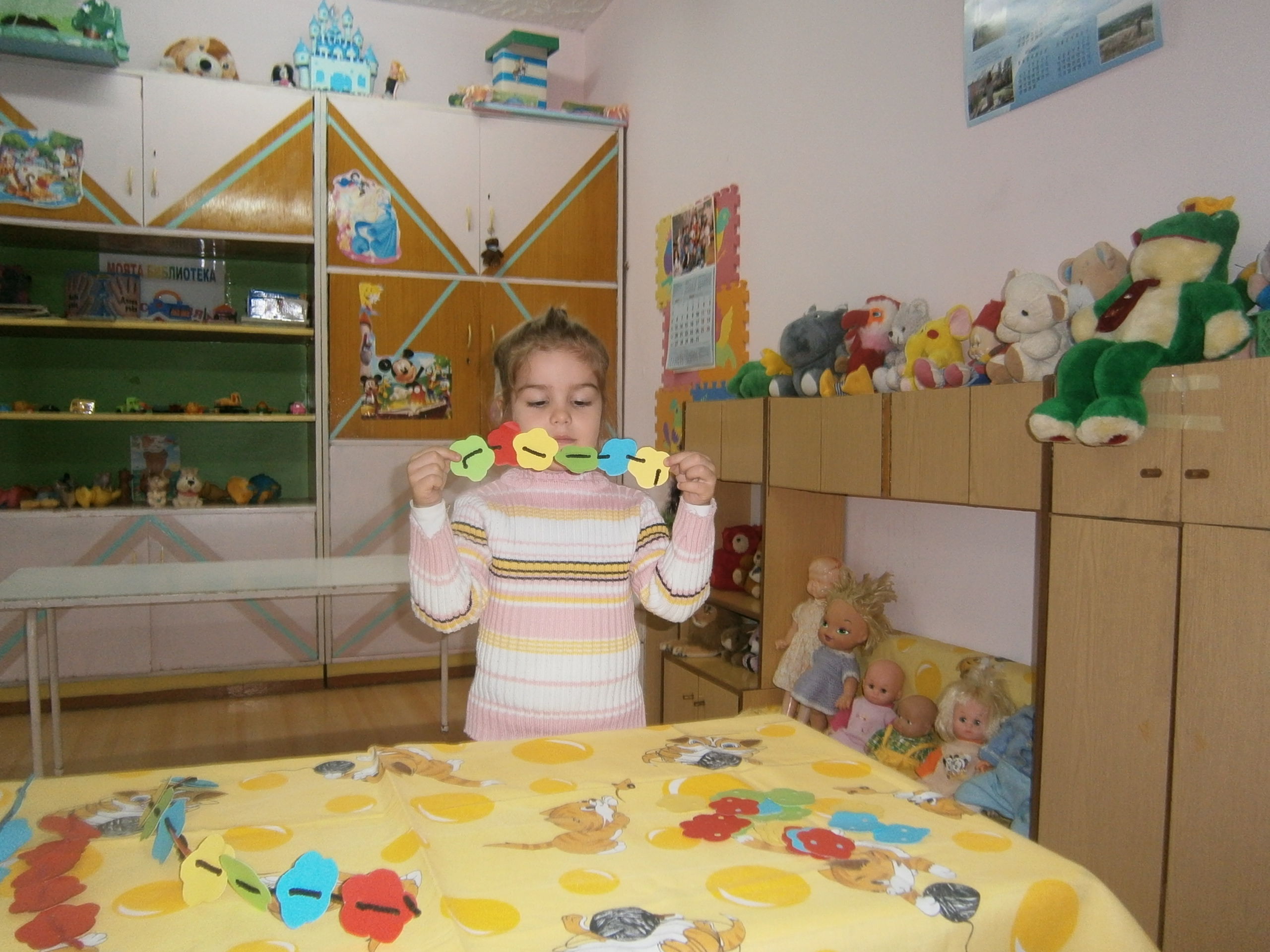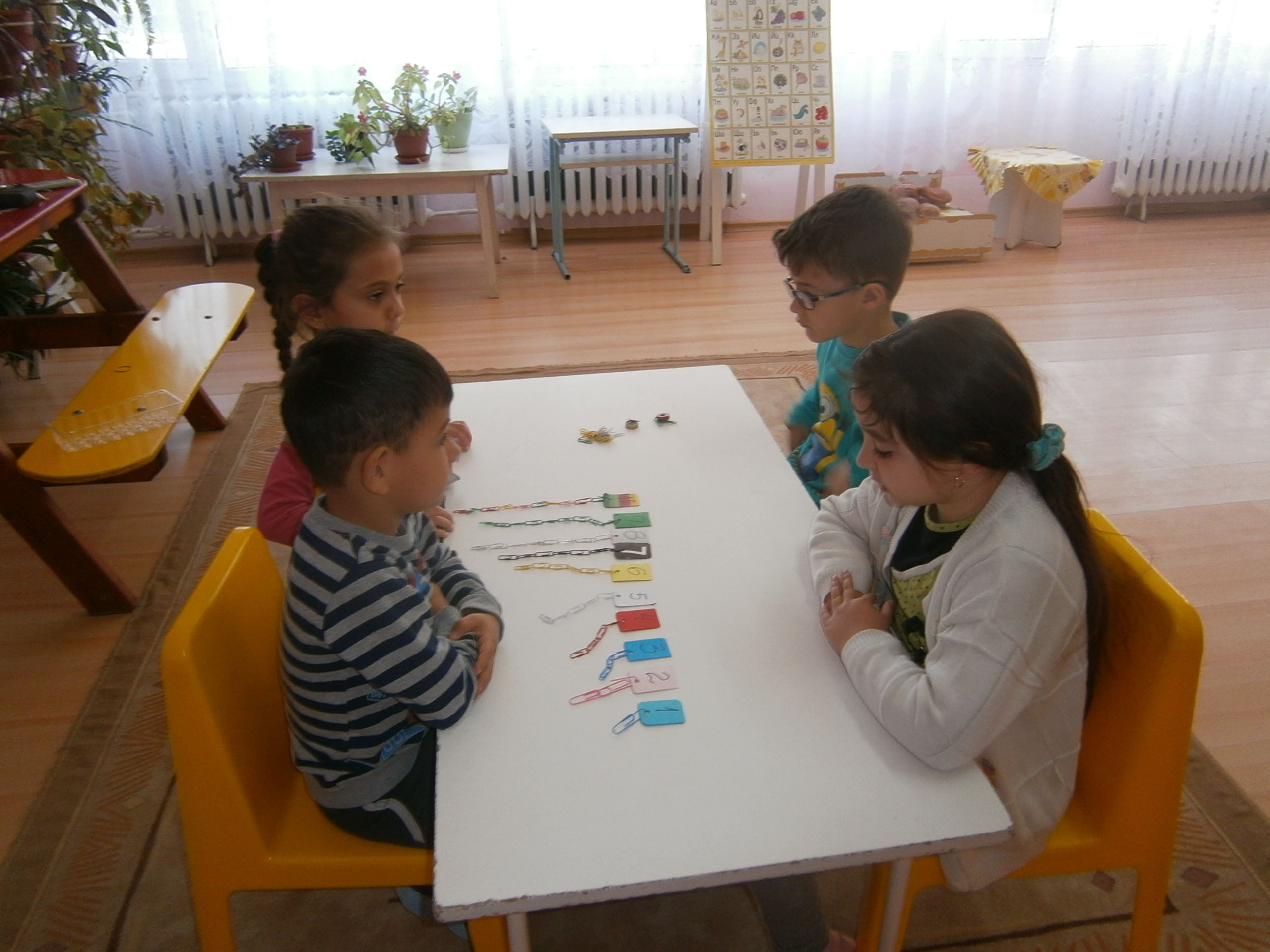 1.Подреди бодлите на таралежа 2.Нанижи гердан като редуваш цветовете 3.Подреди кламерите по брой и по цвят 4.Геометричнодомино