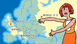 La imagen representa el estado del clima en algunos países, de acuerdo con esto, se puede decir que el país más frío es París.