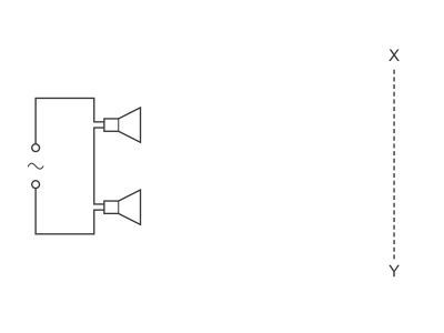 Two identical loudspeakers are connected in series to an a.c. supply, as shown.