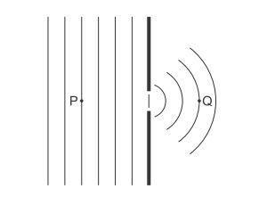 Plane wavefronts in a ripple tank pass through a gap as shown.