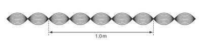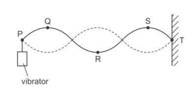 A stationary wave is formed with two nodes and two antinodes as shown.