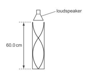 The sound from a loudspeaker placed above a tube causes resonance of the air in the tube.