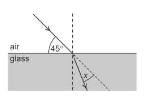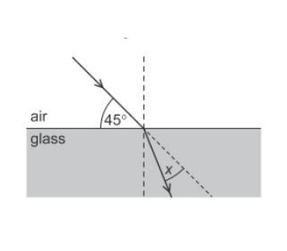 A ray of light is incident on the surface of a glass block, as shown in the diagram.