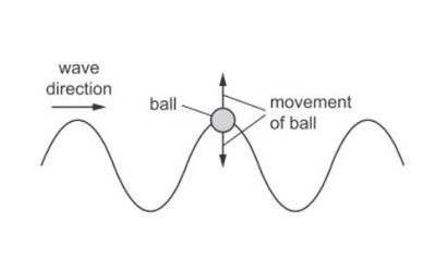 A ball floating in a ripple tank begins to move vertically up and down as a wave passes beneath it. The ball does not move horizontally. Which statement is correct?