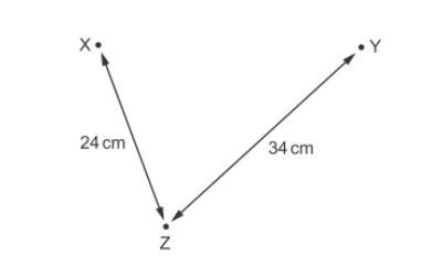 Wave generators at points X and Y produce water waves of the same wavelength. At point Z, the waves from X have the same amplitude as the waves from Y. Distances XZ and YZ are as shown.