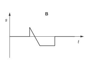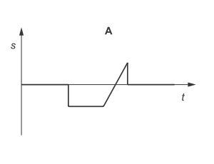 Which diagram correctly shows the variation with time t of the displacement s of the particle P in the rope?