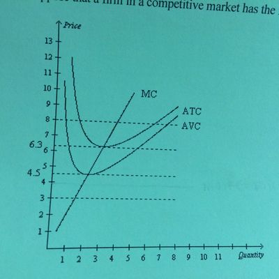 Suppose that a firm in a competitive market has the following cost curves (see picture)