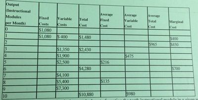 What is the marginal cost of creating the tenth instructional module in a given month?