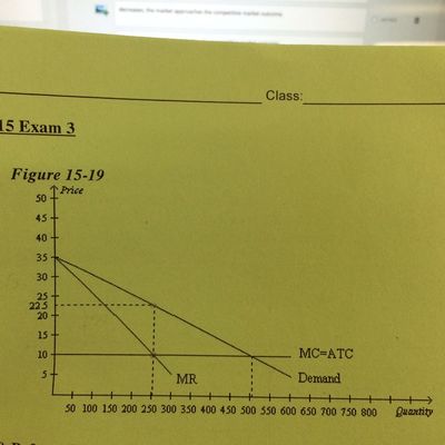 A monopoly firm maximizes its profit by producing Q = 500 units of output. At that level of output, its marginal revenue is $30, its average revenue is $60, and its average revenue is $60, and its average total costs is $34.