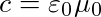 The magnitudes of electric and magnetic fields in electromagnetic wave are related by the expression E/B = c