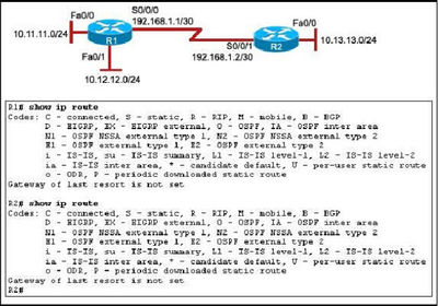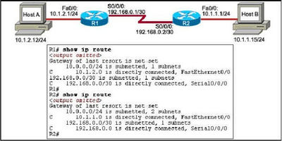 The show ip route command was executed on one of the routers shown in the graphic and the followingoutput was displayed: