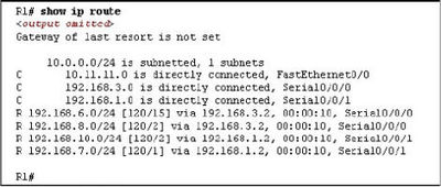 Serial0/0R 192.168.1.0/24 [120/2] via 192.168.3.1, 00:00:20,
