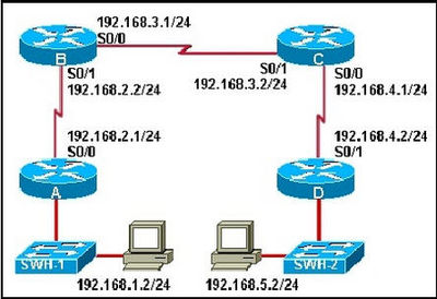C 192.168.4.0/24 is directly connected, Serial0/0R 192.168.5.0/24 [120/1] via 192.168.4.2, 00:00:19,