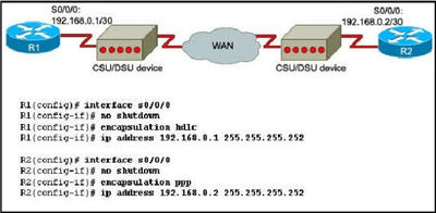 Refer to the exhibit. The network administrator uses the exhibited commands to configure R1 and R2. Theadministrator confirms Layer 1 connectivity between the two routers is functioning properly. However, R1 isunable to ping the serial interface of R2. What could be the reason for this problem?