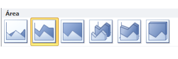 en columnas o filas de una hoja de cálculo. Los gráficos de área destacan la